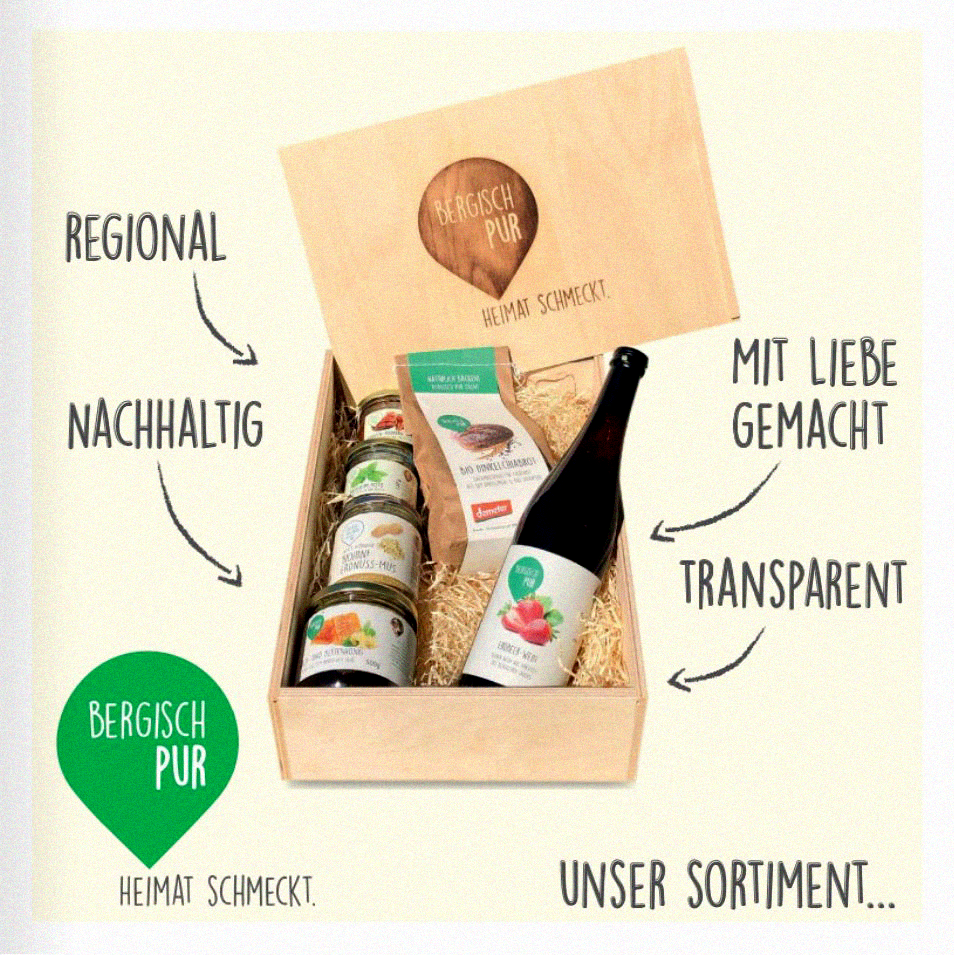 Seit über 20 Jahren bieten unter der Regionalmarke "Bergisch Pur" des Regionalvermarktungsverein Bergisches Land e.V. Landwirte und Lebensmittelhandwerker Erzeugnisse an, die nach den Grundsätzen Nachhaltigkeit, Tierwohl und Landschaftsschutz hergestellt werden. Um Mitglied bei "Bergisch Pur" zu werden, müssen hohe Anforderungen erfüllt werden, wie eine artgerechte Tierhaltung, die naturnahe Bewirtschaftung des Landes und eine transparente Verarbeitung. Die Marke bietet dabei vor allem kleineren und mittleren Familienbetrieben Zukunftsperspektiven. Dies reicht von Milchviehbetrieben über Apfelsaftmostereien bis hin zu Forellenzüchtern. Die regionale Herkunft der Produkte aus dem Bergischen Land spielt dabei eine entscheidende Rolle. Mit diesem Ansatz umfasst die Regionalmarke "Bergisch Pur" eine Wirtschaftsweise, die in Zeiten des Klimawandels aktueller denn je ist.